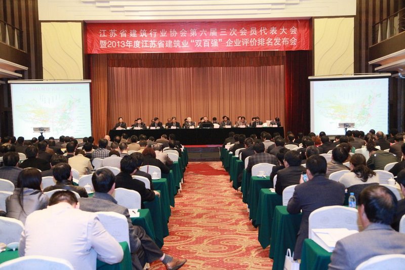 3月25日,江蘇省建筑行業協會第六屆三次會員代表大會暨2013年度江蘇省建筑業“雙百強”企業評價排名發布會在南京召開。