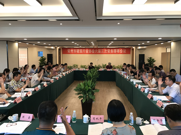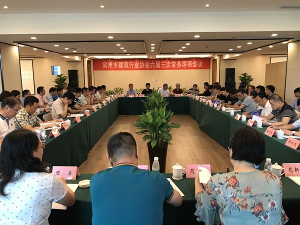8月24日下午,常州建筑行業協會六屆三次常務理事會議在龍海建設集團有限公司召開,會議由秘書長朱俊毅主持,51位常務理事和監事參加了會議。市城鄉建設局副局長貢浩平、市建管中心主任干孟澤及局屬相關部門領導受邀參加了會議。
